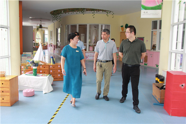 9月11日上午,新北区教育督导处孙处和钱督走进龙虎塘街道中心幼儿园玲珑园区,进行安全工作督查。