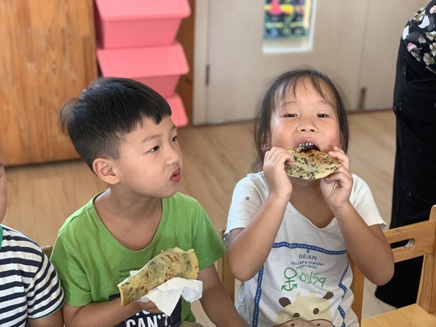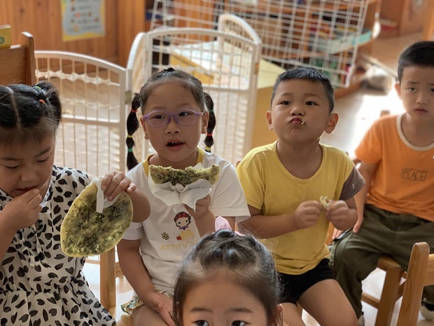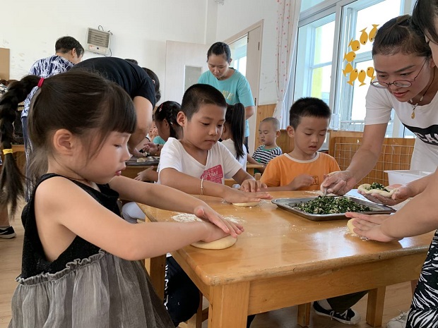 中秋的作品样样美,大班的孩子尝试制作安家特有中秋节美食“月亮饼”从制作馅料的调制到月亮饼的制作,孩子们开心快乐的擀、压、团,制作出一个个美味月亮饼。孩子们把自己制作的月亮饼高高举起。“看,我做的月亮饼圆吧!”“老师,我的月亮饼可香了!”