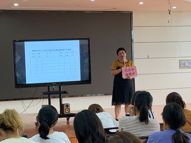 在严峻的安全背景下,为了提高校园安全保障,许主任介绍了我园的安全措施。门卫是第一道防线,必须严防死守。我园能够做到值班人员到位,详细分工每一个人的站位、职责、做好记录。对于幼儿中途离园、园外来访人员,我园做到及时登记,联系相关人员接待。私人快递不入园,避免安全隐患。为保障幼儿在园能够安全开展各项游戏活动,园领导每天多次巡查校园,一旦发现安全隐患,及时报修,设置安全警示标志。