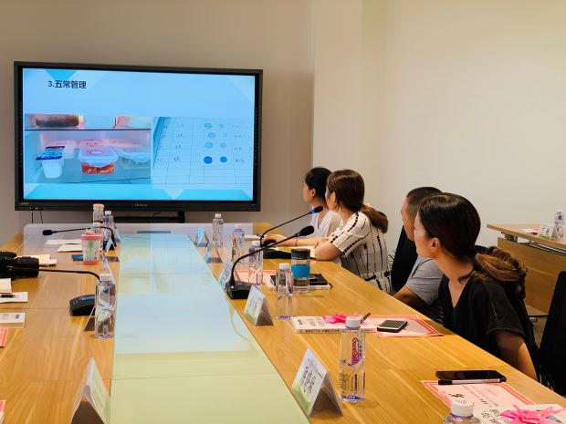 幼儿园的食品安全工作一直是备受社会、家长关注的热点。保健室徐美英老师详细地向家委会成员介绍我园规范的进货、验货、留样记录、餐具消毒、行政陪餐等各个环节,希望家长对我园的食品安全工作起到监督的作用。