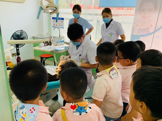 当日上午,在老师的带领下,还有部分家长的陪同下,孩子们徒步来到了魏村远近闻名的裴氏口腔医院。在诊所的工作人员热情地接待下,我们对诊所各室进行了逐一参观,有消毒室、包装室、清洗室、诊疗室和洽谈室。
