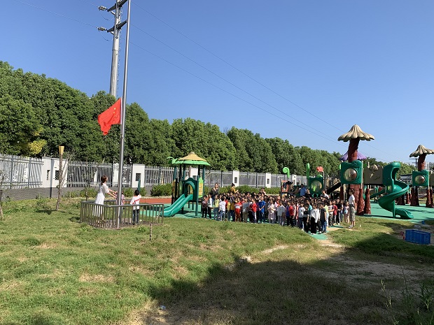清晨,迎着初升的太阳,孟河实验幼儿园全体师幼又相聚在美丽的操场上举行升旗仪式。本周由大班孩子们担任升旗手,他们以饱满的热情,庄严地护卫着五星红旗。