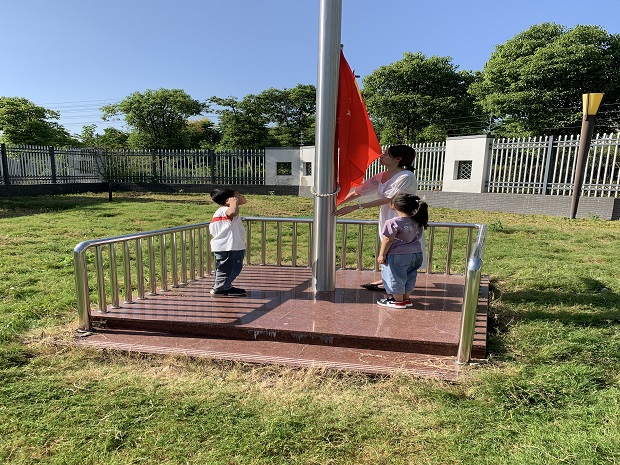 最后大一班老师进行国旗下讲话。对全体师幼进行爱国、爱园及安全教育。通过升旗仪式,从小培养孩子们爱护国旗,尊敬国旗的意识,潜移默化地进行爱国主义教育。
