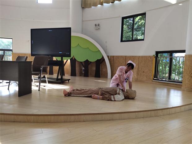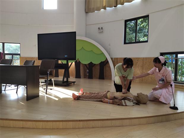 为加强幼儿园安全工作的管理,普及全园教职工的急救技能,提高安全意识,降低幼儿受伤害的程度,使教师能在幼儿园突发事件中运用一些简单易行的急救知识进行急救。2019年9月23日下午,幼儿园邀请了西夏墅卫生院的巢娜护士走进西幼,组织全体教职工开展了急救知识培训活动。