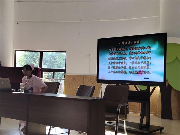 活动中,巢护士通过视频向老师们讲解了救护新概念及心肺复苏的步骤、了解心肺复苏的理论知识,心肺复苏的救命黄金时刻和“海姆立克”急救方法,救助过程中的正确步骤、注意事项,还做了现场模拟示范,详细专业地进行了心肺复苏的动作演练,还与老师们互动,现场指导保健老师进行操作练习,帮助老师掌握正确的急救方法,懂得在意外来临时该如何正确面对。