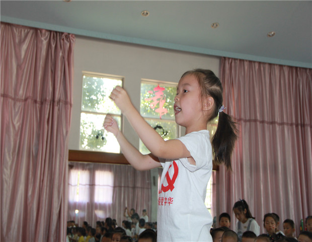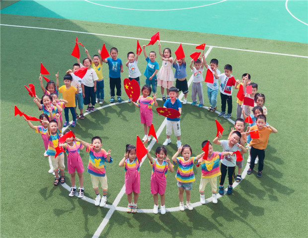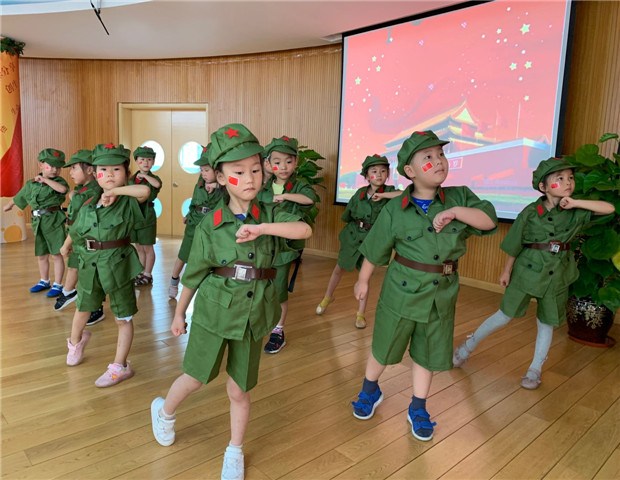 当天,小朋友们还邀请了小班弟弟妹妹欢聚一堂,共同体验“童唱红歌”合唱活动。每位幼儿以饱满的热情、激昂的歌声,抒发着对祖国的无限深情和热爱,《大中国》、《红星闪闪》等一曲曲历久弥新的经典红歌,时而跌宕激昂,又时而轻柔婉转。整齐的队伍、嘹亮的歌声、特别的服装,充分展示了各班的精彩。由幼儿与教师共同组成的大众评委团纷纷亮出高分,现场高潮不断。整个活动,不仅发展幼儿的艺术表现与创造能力,同时也展现了新时代幼儿的爱国主义情怀。
