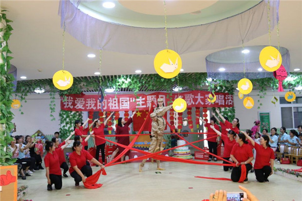 为庆祝中华人民共和国成立70周年,弘扬爱国主义和民族团结精神,展示教职工积极昂扬的风貌,9月29日,河海幼儿园工会组织全体教职工开展了“我爱你,中国”红歌赛,以歌声向祖国的生日献礼。
