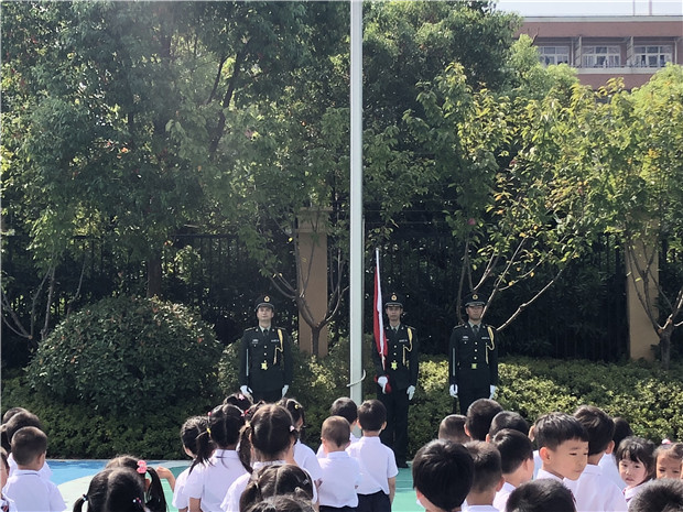 9月30日上午,河海幼儿园国宾部全体幼儿、教职工在操场,参加了一次庄重、有意义的升旗仪式。我们邀请了新北区人民武装部,退役的执行国家仪仗司礼任务的朱小东、钱超、黄珂等五人。