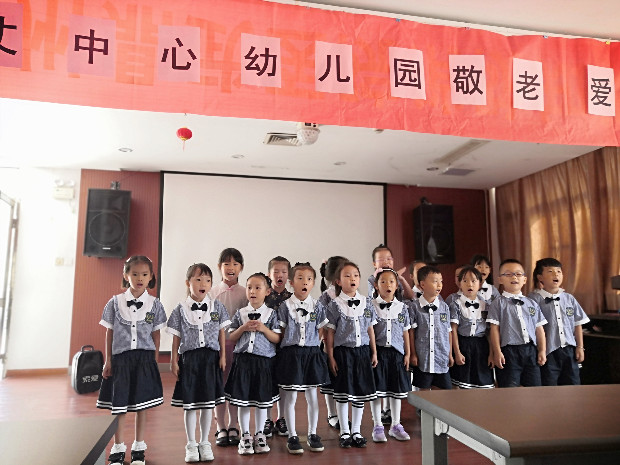 农历九月初九是重阳节,又叫“老人节”,是个敬老爱老的日子。为了让幼儿践行传统节日的习俗,从小培养尊老敬老的良好品质,2019年9月30日上午,百丈中心幼儿园大三班全体师生徒步2.3公里来到鼎武医院慰问老人院的老人,送上节日的祝福。