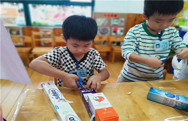 瞧!老师提供的牙膏盒在孩子们的创意组合与装饰下,变成了飞速运行的高铁列车;(插图)五颜六色的轻泥通过孩子们娴熟的捏错揉压,变成了一只只憨厚可爱的熊猫宝宝时而在打滚,时而在啃竹子,憨态可掬的样子可爱极了;(插图)还有那富有中国特色的民族服装和各时代服装,也为孩子们鉴赏了中国元素的美,引发孩子们主动去欣赏和设计……伴随着《我和我的祖国》的歌声,更加萌生作为中国娃的自豪。