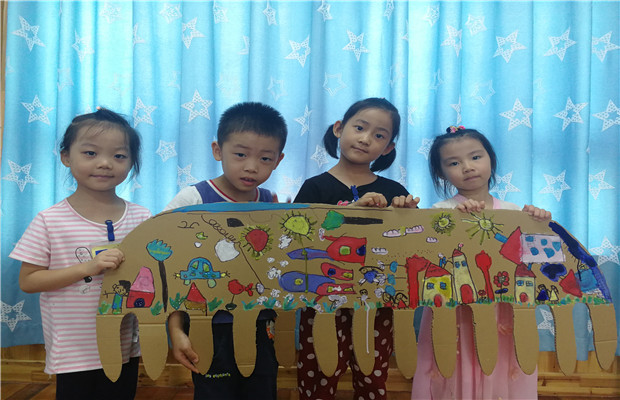 随着常州地铁1号线的开通,庆祝中华人民共和国成立70周年地铁主题列车——龙城先锋号也同期上线,成为常州的一张新名片。除此之外,还有江南韵味的青果巷、千年历史的天宁禅诗、富有文化底蕴的梳篦……作为龙城儿女无不为家乡的建设感到自豪。藻幼萌娃们在玩美活动中,用剪纸、水墨、颜料装饰等不同形式来表现家乡常州的著名景点、地标建筑,感受大常州的日新月异!