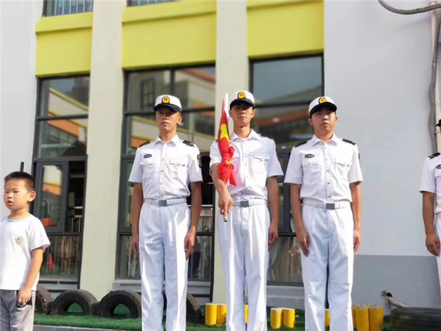 看,英姿飒爽的解放军升旗手,护卫着国旗,迈着整齐的步伐,步履轩昂地走来,激扬的国歌奏响,五星红旗冉冉升起,孩子们个个精神抖擞,挺直着小小身躯,向国旗行注目礼。随着国歌结束,老师孩子们齐唱国歌,嘹亮动听,大班孩子在飘扬的国旗下发表着演讲述说着祖国动人的故事。庄严、肃穆的升旗仪式感染着在场的每一个人,带给了孩子们无比的震撼和激动。升旗仪式结束,孩子们献礼解放军叔叔,感谢他们的辛苦付出,为我们带来了如今的幸福生活。小小的仪式,大大的情怀,承载着我们所有人的感谢和祝福!