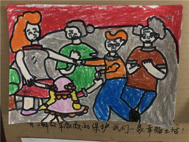 “幸福的生活从哪里来?要靠大家来创造。”是的,中国人民在70年间努力奋斗,靠一双双勤劳的手创造了现在的幸福生活。小A说:我奶奶吃完晚饭就去跳广场舞了,她可喜欢了。小B说:我们休息的时候爸爸妈妈就会开着车带我去旅游。小C说:过节的时候,我们买很多菜在一起吃团圆饭。小D说:我们现在住的楼房都是很高很高的。小E说:有解放军叔叔保护我们,我们可以在幼儿园认真学本领……。童言稚语却透露着生活的幸福、安定。