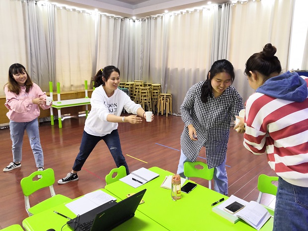 活动以团队游戏“纸杯传水”开启,老师们分为两组,进行PK,看哪一组在规定时间内运的水最多。通过激烈的游戏,老师们感受到了与同伴合作的乐趣和力量,也明白了知识经验同水一样积少成多的道理。
