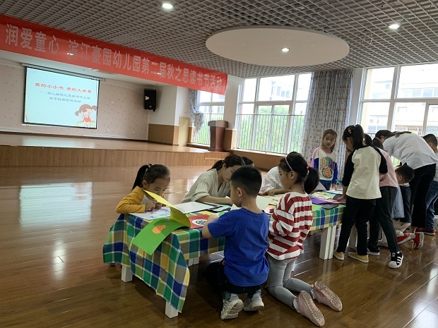 为了进一步推动幼儿园早期阅读,为幼儿创造丰富的多元阅读环境,让孩子爱读书,努力营造一个丰富、有趣的阅读情境,同时将环保、爱心理念深入孩子们的心田,为此,在滨江豪园幼儿园第二届“秋之思”读书节开展之际,大班组进行了“我的小小书 我的大世界——经典绘本我来造”为主题的自制图书比赛。旨在通过自制图书使孩子们能更深切地体现家长对孩子所倾注的爱心,加深家长与孩子的感情交流,在制作过程中让孩子参与其中,有利于发挥幼儿的想象力、创造力和艺术天分,享受亲子合作的快乐。