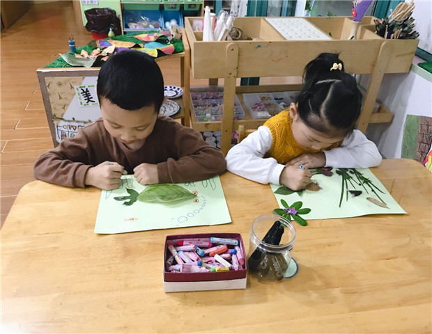 多彩的季节,赋予幼儿取之不尽的学习源泉。6班、11班的孩子徒步向田野出发啦!沿途老师和孩子一起欣赏秋天的美景。飘香的桂花树、火红的枫树……孩子们迫不及待地席地而坐,拿出彩色笔绘画映入眼帘的秋景。7班、10班的孩子对满地的落叶产生了浓厚的兴趣,他们弯腰捡起落叶,纷纷提问:“为什么秋天树叶会变黄?”“为什么银杏叶的颜色是浅绿色的?”“为什么枫叶是红色的不会变黄呢?”,回到班孩子们把这些问题表征后投放在语言区,通过阅读有关秋天的绘本、家长助力上网查找资料寻找答案,树叶粘贴画、树叶书签、树叶标本、树叶邮票的创作,更为班级秋天主题注入了浓浓的秋天气息。