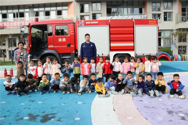 为了进一步强化全园师生的消防安全意识,提高他们的防范自救能力,10月16日下午,河海幼儿园邀请泰山路消防中队的消防车进入校园,开展了一次颇具特色的消防安全教育活动。