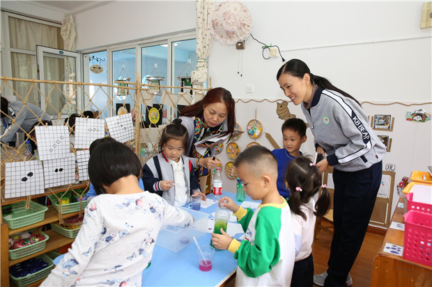 评活动。专家组观摩了幼儿晨间活动、晨操。深入到各班级中查看幼儿自主进餐、晨间谈话、集体活动、区域游戏活动,对活动的环节设计、教师的活动组织给予了高度评价,同时针对活动中的细节与老师们进行了面对面的交流,在专家的指导下老师们受益匪浅。