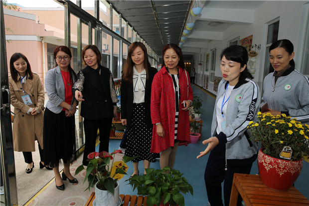 看环境。评估组现场察看了幼儿园运动场、户外游戏环境、各专用活动室、班级活动室、走廊等,每到一处都进行了指导与交流。园长陈华芳重点向专家介绍了园所近期改造及后期计划改造的园地,得到了专家们的一致认可,同时也收获了一些有效的建议。