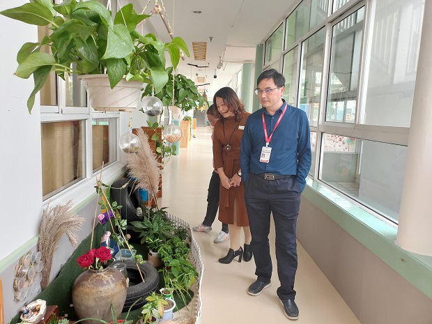 复审组领导首先查看了园内户外环境,丁红波园长分别从政府投入、环境改造、设计理念、文化传承等方面与专家组进行了介绍、交流。领导们对于我园户外活动场的别具匠心与农村特色尤为赞叹。