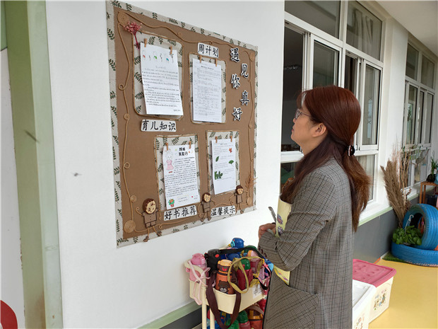 专家组针对省优质园复评标准细进行逐条对照,全方位查阅台账资料。