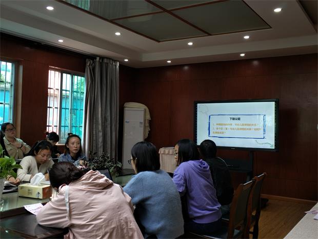活动中主持人包老师向大家介绍了一本书:《学前课程与幸福童年》,并带领学科组成员通过三个核心问题解读分享了书的第二章。首先第一个问题是什么是好的幼儿园课程;第二个如何理解幼儿园课程生活;第三个师幼儿园课程建设的基本思路有哪些。学科组老师们从幼儿角度、环境方面说出了自己的想法。最后请陆娇园长来总结。陆园长说:“老师们能够结合书上知识说出自己的观点,但是最好要能结合自己的案例,从其他地方出理论依据来证明自己的想法。”