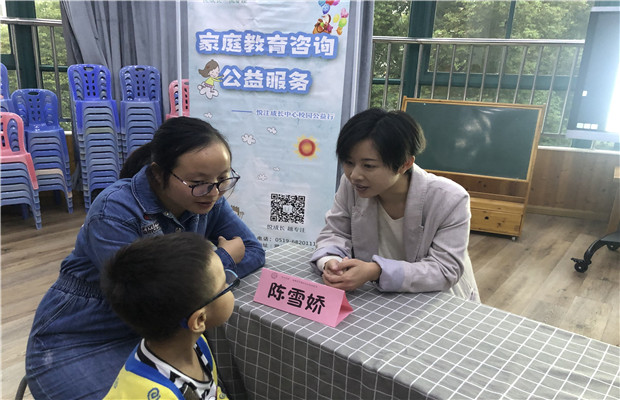 活动结束后,悦注成长中心的心理老师也来到现场,为在家庭教育中有困惑的家长答疑解惑。