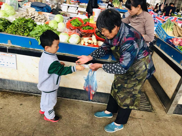 著名教育家陶行知先生曾说:社会即学校,生活即教育。百丈中心幼儿园秉承“课程游戏化、生活化”的教育理念,充分挖掘利用社区资源,让幼儿走进小社区、体验大世界。为了让幼儿进一步了解社会,体验劳动成果来之不易,认识菜市场各类物品的种类、购买流程等常识性知识,配合主题活动的深入开展。2019年10月23日和24日,百丈幼儿园中班组的小朋友们在老师的带领下,进行了一次有意义的体验式实践活动——去买菜,孩子们手拉手兴致盎然地,向百丈菜市场出发。