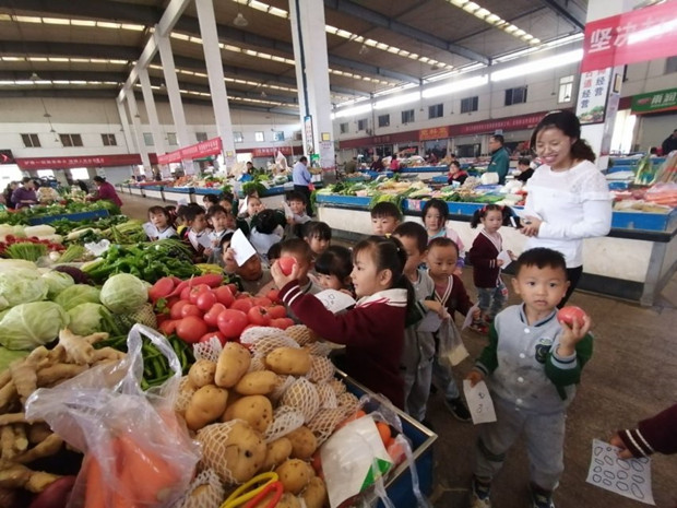在孩子们的欢声笑语中,活动拉下了帷幕。通过此次活动,孩子们对菜市场功能及其区域划分有了全面的了解,丰富了对常见食物的认识,更亲身感知体验了在菜场买菜的生活内容,积累了相关的生活经验,并知道了如何去买菜,提高了他们的观察力和社会交往能力,促进了社会性的发展。