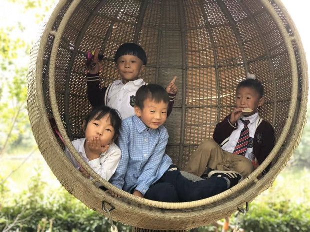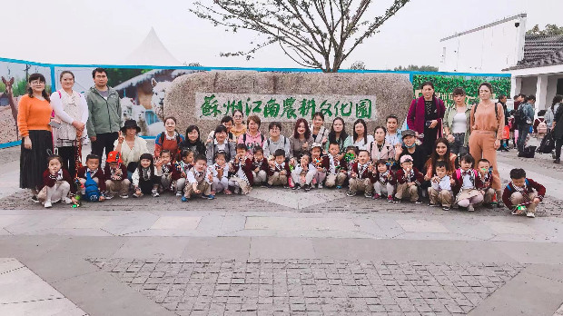张家港农耕文化园,有各种各样的花草树木,设置了农耕历史区、江南养殖区、江南作坊区、农户设施区、生肖区等9个农耕文化功能区域,让我们在观赏江南田园风光、品味江南农耕文化中增长知识。当然还有一些比较有趣的活动,比如小猪跳水、牛耕地、鸟说话等,还有一些比较少见的展示活动,比如磨豆腐、弹棉花、织布、酿酒等,小朋友对未知新鲜的事物还是很感兴趣的。中大班的孩子们在亲子游玩的空隙中,还用稚嫩的画笔绘画自己感兴趣的内容,用稚嫩的话语与那些留园的孩子交流、分享自己的所见所闻。
