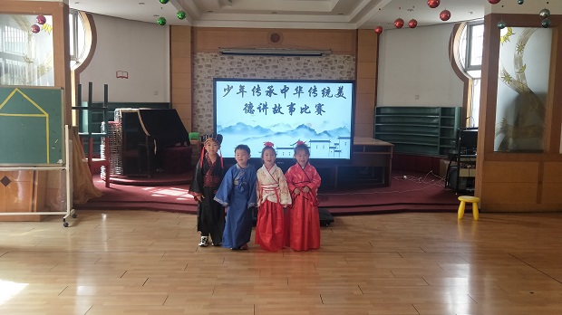 为了提高孩子的表达能力,自通知日起,家长、孩子和老师就投入到了积极备战之中,选故事、定内容、加动作,大家积极努力的准备着。比赛中,孩子们个个落落大方,语言表达清晰标准,根据需要还加上了肢体语言。《司马光砸缸》、《铁杵磨成针》、《金孝拾银》、《子路借米》、《孔融让梨》等一个个孩子们千挑万选的故事,精彩的表演,赢得了大家的掌声。
