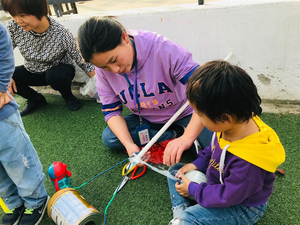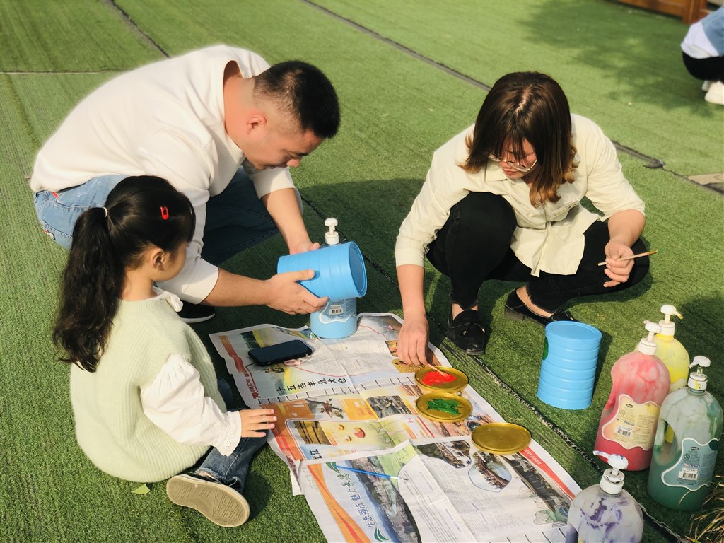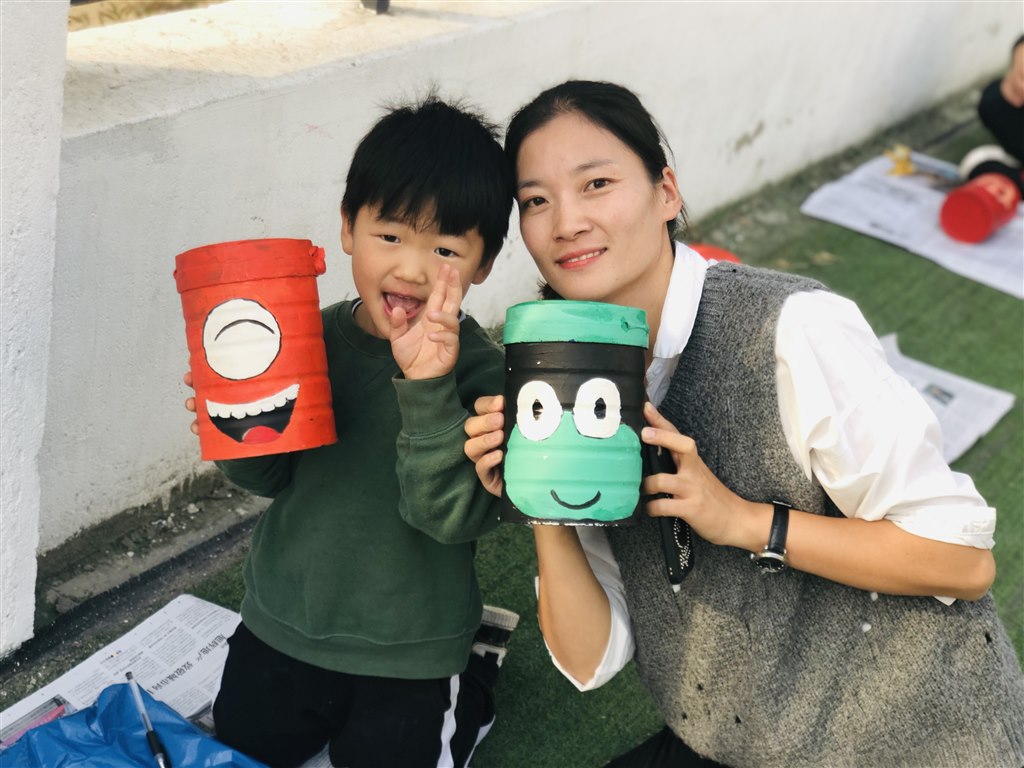 本次半日开放活动,安排了亲子游戏器材制作、丰富的户外亲子游戏活动和家园互动三个环节。各班根据幼儿的年龄特点和兴趣需要,确定了亲子游戏器材制作的主题,家长们准备工作充分,提前收集好废旧材料和制作所需的工具,芽芽(1)班亲子制作的是《奶粉罐变变变》;芽芽(2)班制作的是《蹬蹬桶》和《舞龙》,芽芽(3)班制作的是《滚滚乐》,瞧,一个个废旧物品,在家长和孩子的手中变成了有趣又好玩的游戏材料,孩子们玩得不亦乐乎。随后,各班都准备了精彩有趣的亲子游戏(活力传球、鳄鱼跳、小脚踩大脚等),家长热情参与,切身感受与孩子一起游戏的快乐。与班级老师的沟通交流,让家长更多的了解孩子在园的生活、学习情况。