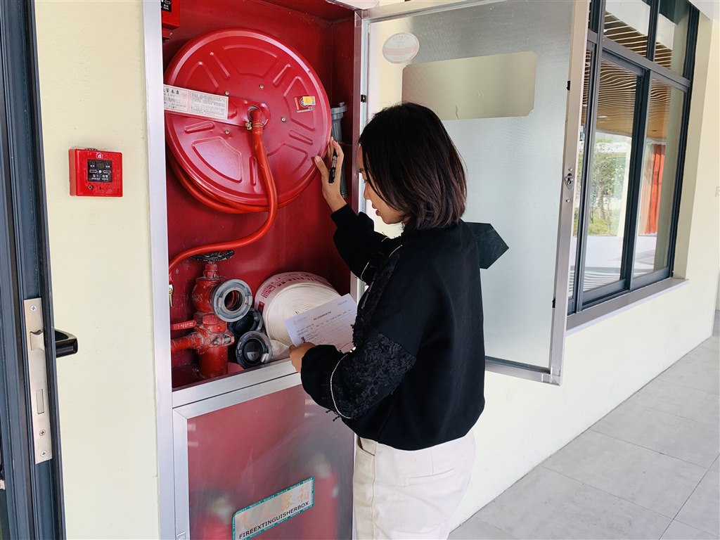 硕果累累的秋天到了,孝都幼儿园全体师幼即将搬入新园区,为全体师幼能顺利安全的进驻新园,也为了进一步加强幼儿园消防安全管理,清除幼儿园火灾隐患,给幼儿营造一个安全的学习环境。2019年11月6日中午,主管安全的胡清丽老师带领后勤团队对新园区的消防设备进行了详细的排查,并且在排查的过程中有针对性的对新的消防设备进行了仔细的讲解,特别是消防栓如何使用,怎样查看它是否正常等,用后勤工作人员听得懂,容易理解的方式进行了一一解答,这种现场实操的模式让后勤团队人员的安全意识得到了提高,消防设备的养护知识也得到了储备,使幼儿园安全工作更上一个台阶。(撰写及拍摄:胡清丽,审核:蒋薇)
