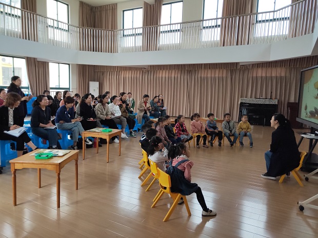 名师工作室的四位老师分别示范了四节精彩纷呈的课堂教学活动。其中扬州机关第三幼儿园的曹莉老师利用白板教学,向我们展示了一堂有趣的中班数学活动《小蚂蚁请客》。活动创设幼儿感兴趣的故事情境,利用发散性思维让幼儿学会了环形点数的多种方法;无锡机关幼儿园的陈栩园长更是使用新颖的辩论形式,层层深入、循序渐进地让孩子学会辩论的方法,形成了独立思考、坚持自我的学习品质。