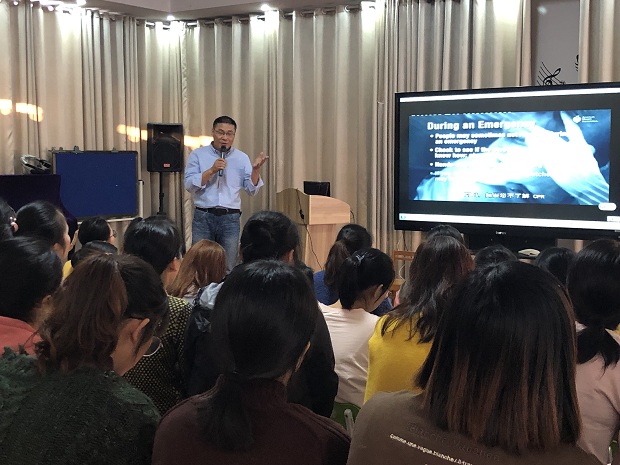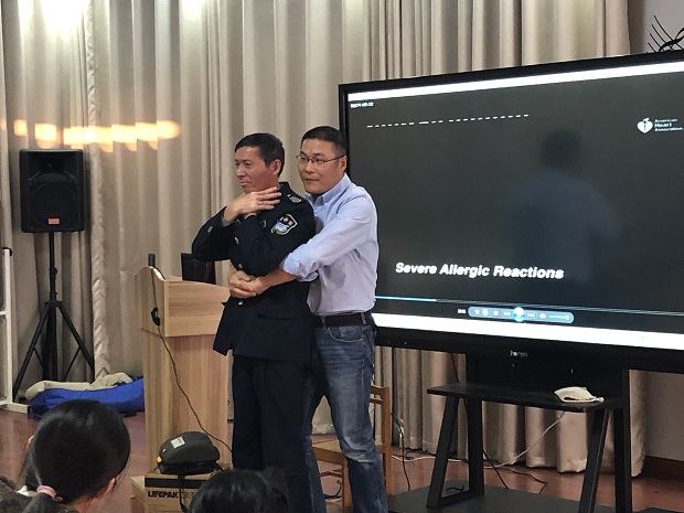 首先周老师给大家讲解了关于 “气道异物”的急救处理常识,跟大家分享了非常有效的“海姆立克急救法”。