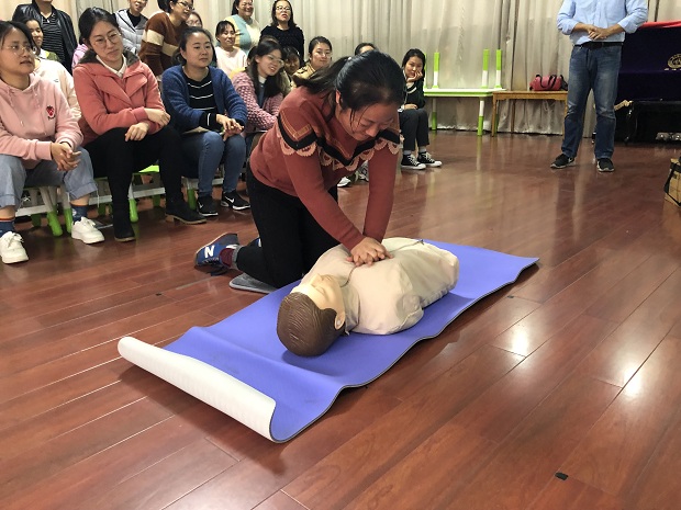 安全工作是幼儿园最重要的常规工作之一,幼儿的安全是一切发展的保障,只有在幼儿生命健全的基础上才能保障其身心健康发展。2019年11月11日下午16:00,美国AHA培训机构的专家周鹰老师对新魏幼儿园全体教工进行“心肺复苏和气道异物”的专题培训。
