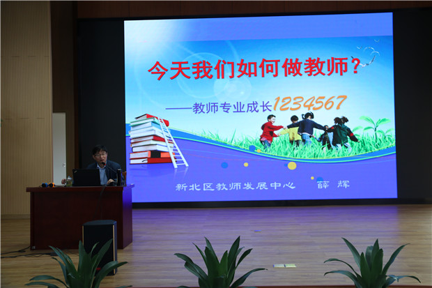 薛校长以《今天我们如何做教师?》为题,从教师专业发展的概念、内涵、发展方向等几个方面为切入点,提炼出七大关键点,分别是:一个原则、两次成长周期、三个方向、四大素质、五力行动、六大法则、七面镜子。同时,教师专业发展,离不开专业阅读,薛校长从教师阅读的特殊意义谈起,鼓励教师重视二次成长周期,多阅读会阅读,经常读修炼内功的书、读学科建构的书、读教育理论的书,做一个终身学习的专业教师。