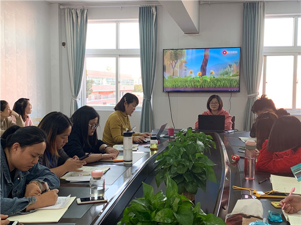 首先主持人郑静老师从和数字“3”玩个游戏进入我们今天的会议,“3”代表了我们全园有3个级组,每个级组基本上都有3个班级,每个班级都是3位老师,虽然游戏简单,但寓意丰富且体现了我们团队的凝聚力;一个短视频“我只是一株向日葵”,老师们从中看到了顽强的生命力,看到了逆境中求生存的渴望和行动,看到了困难来临时不忘初心的那种毅力。