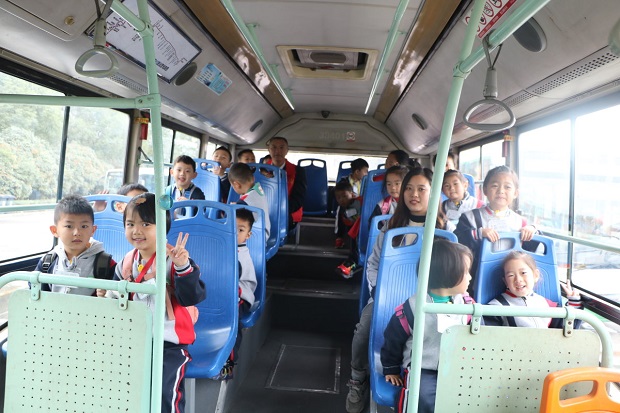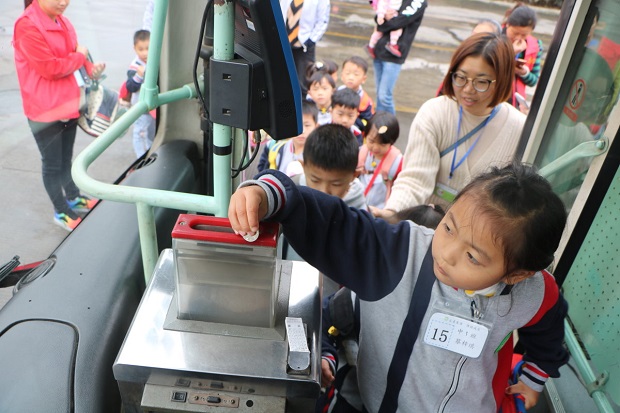 一大早小朋友们背上自己收拾好的行囊踏上了旅途。此次的出游方式与以往不同,我们将乘坐公交车前往目的地。公交车上孩子们体验了投币乘车的乐趣。而公交车上的各种标志、提示语也很好的成为了教育资源,让孩子们在亲身体验中学到了乘坐公交车的规则。