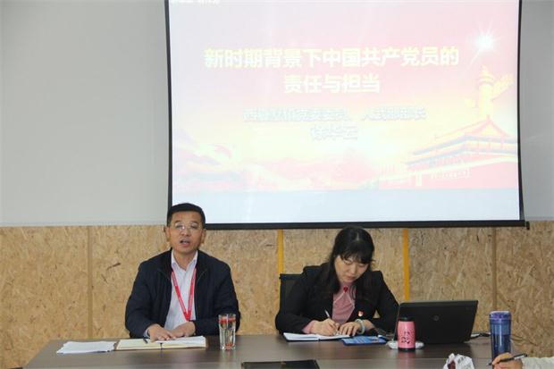 课上,徐部长围绕三部分展开讲述,奉献责任担当是共产党员的基础素质;全面从严治党新常态下为何强调责任担当;如何在实践中落实共产党员的责任担当。徐部长全面系统的阐述了我们全体共产党的责任与担当,内容详实具体,并结合工作实际强调新常态下党员如何来履行责任担当。最终以“不忘初心、牢记使命”为结尾,鼓励教师们在今后的工作岗位上要有爱心、讲奉献,进一步落实责任与担当。