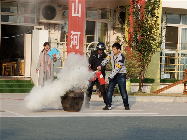 随着火警声响起,只见各班小朋友在老师的带领下,用毛巾捂着口鼻,弯腰小步快走。在二楼,三楼的班级,按本班预定疏散路线,在楼梯上不拥挤,快速有序地从各个楼梯口逃生。途中,中班的孩子们井然有序,小班的孩子们也能够在老师的带领下,不惊慌不乱跑,迅速撤离到操场。随后教师组织幼儿在操场上以班级为单位集中并清点人数,及时把幼儿人数及安全情况报告给幼儿园安全演习总指挥林文玉副园长。紧接着,全体师生学习了灭火器的使用方法,并进行了灭火的演练,整个演练活动井然有序。