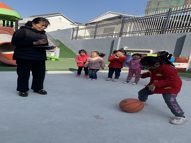 趁阳光正好,微风拂颊, 2019年11月22日,孟河实幼石桥园中班的小朋友在中班老师的组织下展开了一场别样风采的“篮球赛”。