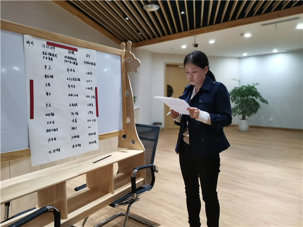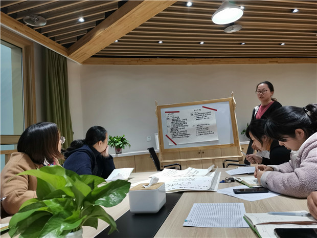 活动伊始,王彩红副主任以音乐游戏“黄鹂鸟”带领大家暖场。接着大家按园区进行分组,针对话题讨论“保健及安全”的工作关注点:玲珑园区幼儿用餐、午睡环节;盘龙园区晨间接待、户外游戏环节;腾龙园区幼儿起床、午点及放学环节;盘龙新园区班级一日消毒各环节。大家结合自己平时的工作日常各抒己见,并且把自己小组的讨论内容记录下来,分工合作、每组完成一份保健安全海报。