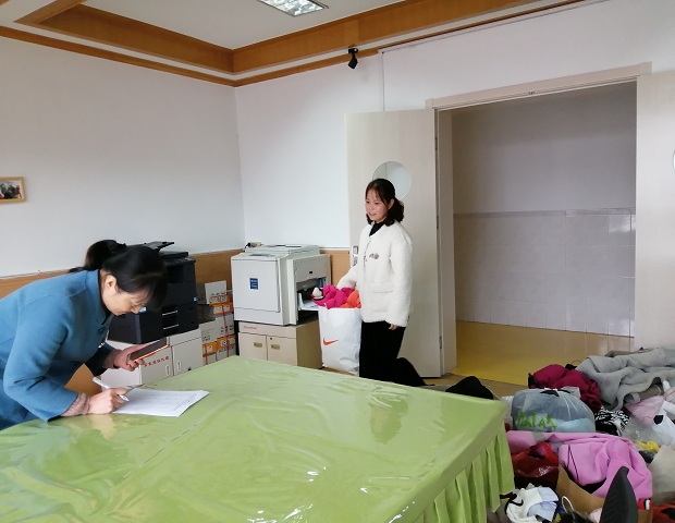 活动开展受到老师们的广泛支持,大家纷纷参与其中,整理衣物分类打包,送至学校。仅一天,学校就收到满满一屋子爱心冬衣。工会委员们进行二次整理,有的分类,有的装包封口,大家配合地默契十足,这里面有很多衣服都是新的呢。王老师又在第一时间赶往邮局进行邮寄,她说:尽量争取衣服早点到。看着王老师从邮局发回来的照片,看着一袋又一袋的爱心冬衣,我们相信,远方的孩子们一定能感受到我们浓浓的情意。