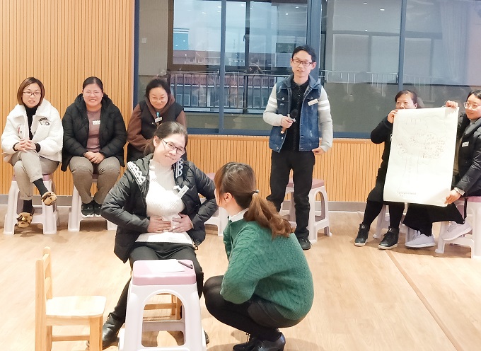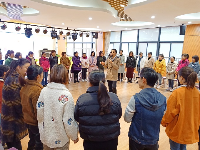 为了帮助新教师尽快建立人际支持,找到集体归属感,培养团队精神,增强合作意识,激发潜能,2019年11月26日下午,我园邀请国家二级心理咨询师、家庭教育指导师吴志伟,为教师开展了一场团体心理辅导活动。