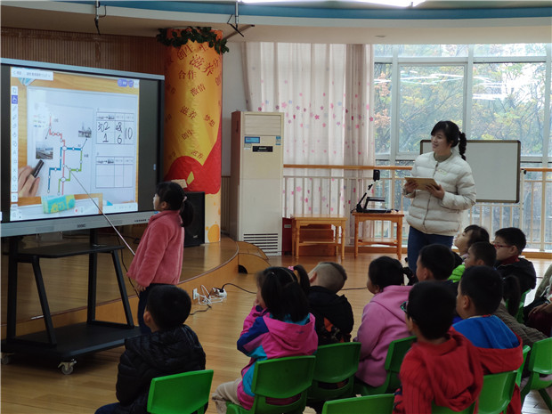 经园级选拔、各幼儿园层层甄选,全区共推选28名教师进行本次优质数学活动的现场角逐。我园胡华老师作为代表也参加了本次展评活动。活动中,各参赛教师都着力于数学核心经验的挖掘,深入钻研教材,精心设计活动。有的利用生活中常见的图形在拼图游戏中开展教学,有的利用绘本故事情境帮助孩子获得数学经验,还有的涉及时事热点“地铁元素”的融入等等。整个展评活动囊括了“规律、图形、方位、数与量”等多方面内容。孩子们在充分和亲切智慧的上课老师、丰富多彩的教玩具、直观有趣的多媒体互动的过程中,“小脸红起来、小眼睛亮起来、小脑筋动起来”,展示出龙幼娃专注耐心、反复思考、不怕困难的良好数学品质。