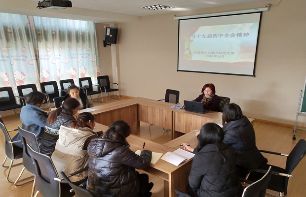 为深入学习宣传贯彻党的十九届四中全会精神,2019年12月9日下午,罗溪镇中心幼儿园全体党员在党支部书记谢菊仙的组织下开展了党员学习日活动。