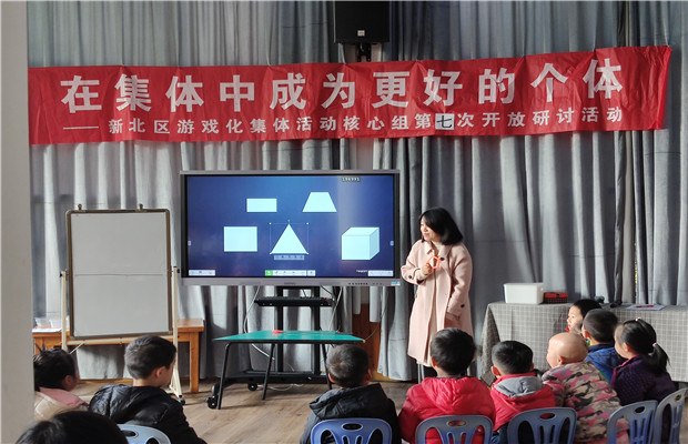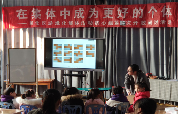 接着,来自藻江花园幼儿园的孙新娟老师和来自新魏幼儿园的毛燕平老师,以大班数学活动《认识正方体》为执教内容进行同课异构,呈现了大班孩子们生活中关于正方体的经验,并梳理经验形成对正方体的认识。活动中,毛老师紧紧围绕教学目标,结合游戏化理念,通过带领孩子们做有趣的游戏,层层深入,让孩子们从亲身经历中去了解正方体有六个相同的正方形的面。孙老师注意结合生活里的情境,幼儿从生活材料中找一找正方形,用PK赛的形式巩固对正方形的认识,孙老师能充分利用记录纸对幼儿进行简洁、精炼的引导与提升。另外;来自银河幼儿园的刘冰老师执教一节大班数学《自制游戏棋》的活动,活动中刘老师引导幼儿同伴之间通过探索、交流的形式熟悉游戏的玩法,并在游戏的不断推进中能通过观察分析、推理判断,尝试用排除解决问题;本次活动不仅以游戏贯穿始终,更让幼儿的自主探索、观察、互相学习贯穿始终,体现了课程游戏化的精神。?