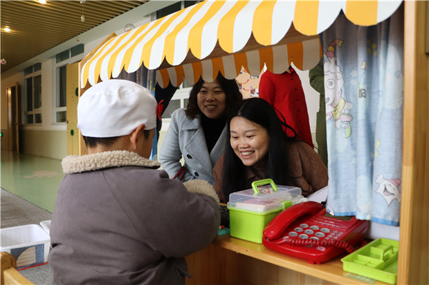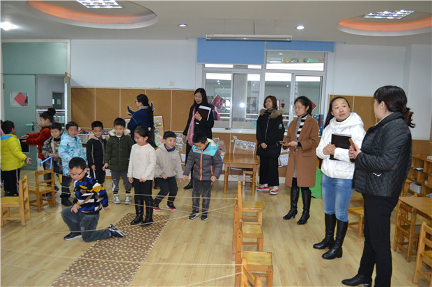 督导小组在园长陈敏霞、副园长徐志娟、林文玉的陪同下分两组对奔牛实验幼儿园总部和金牛园开展督查工作,本次督导活动从上午8:00持续到中午11:30。首先,督导小组巡视校园,了解一年来校园教育设施的改造情况;接着,督导小组走进幼儿的区域游戏,感受奔幼孩子专注、投入的自主学习状态;随后,专家们随机抽取五位老师的教学活动,分组现场观摩,活动后与执教老师进行交流沟通,充分肯定了教师们的课堂教学能力和课程实施能力;上午10点,奔幼总部中大班幼儿开展雨天同楼层混班体育活动,穿越火线、桌椅游戏场、民间游戏跳皮筋、快乐投掷、太阳伞游戏等,充分体现展现了室内体育活动也精彩。