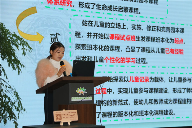 盘龙新园区二楼报告厅里,谢秋欢老师《儿童记录,让幼儿参与园本课程建设》的汇报,理论对接实践,深入简出地讲述了儿童记录在课程建设中的重大意义和作用;朱宏萍老师结合浙江之行谈了自己的学与思,她精心准备,撰写文字稿,整理拍摄照片视频,制作PPT课件,将外出学习的所见所闻、所思所感、所悟所获传递给每位教师,与全园教师分享学习成果。